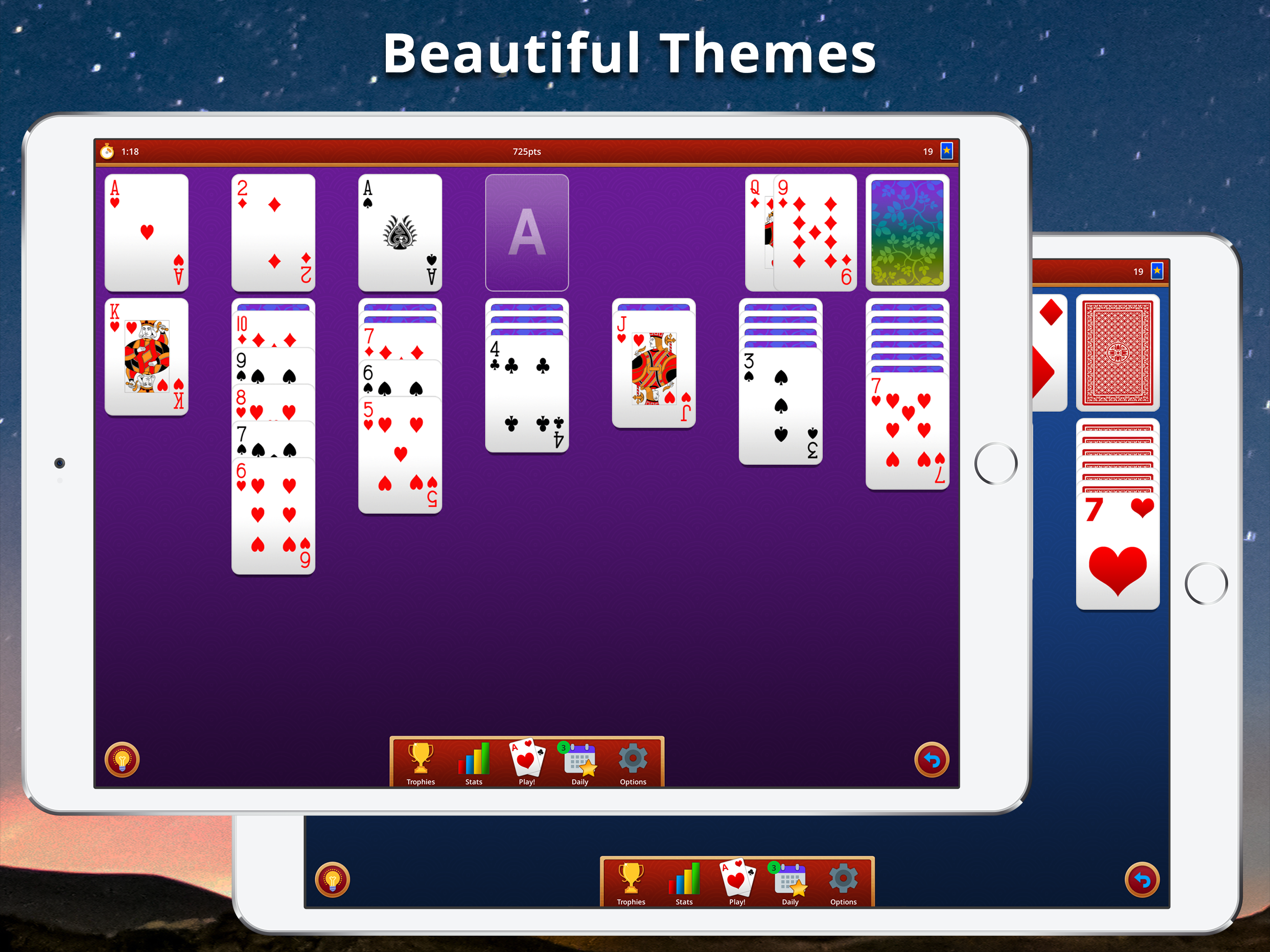 - Beautiful custom card face and back options, for small and large screens